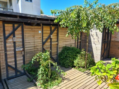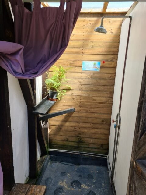 Uno de los detalles mas llamativos es que cada sitio tiene su baño privado, lo cual es muy cómodo para el grupo familiar. Las duchas son compartidas, amplias y lo mejor de todo es que tienen mucha agua caliente (no es por horario).