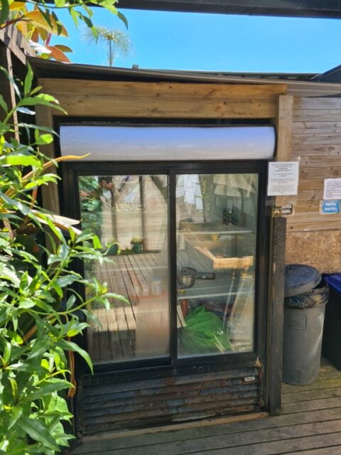 La zona para lavar platos es amplia y generalmente esta vacía. Al lado de los lava platos hay un refrigerador “comunitario” donde cada sitio tiene asignado un espacio para guardar alimentos, bebidas o cervezas.